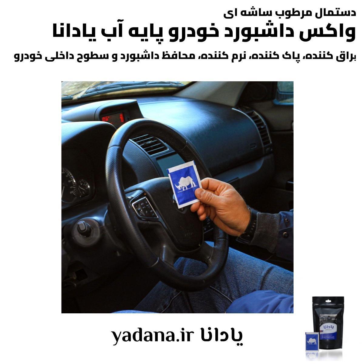 روش استفاده دستمال مرطوب ساشه ای واکس داشبورد خودرو پایه آب یادانا